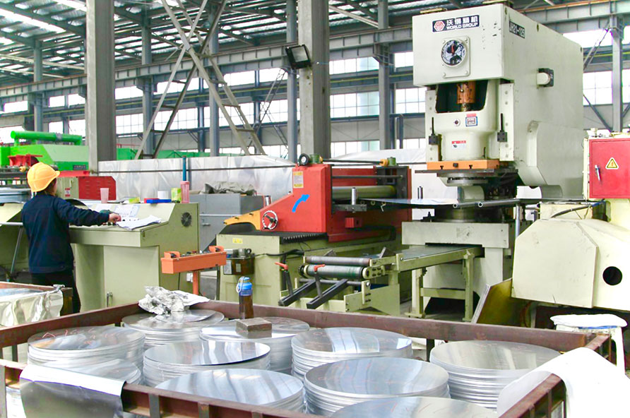 We have 16 casting processing production lines, 3 continuous casting processing production lines, 1 DC processing production line, 3 cutting machines, 2 slitting machines, 1 tensioning machine, 20 annealing furnaces, 3 punching machines.